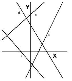 Какая из прямых (a, b, c, d), изображенных на рисунке, может являться графиком уравнения 4x -7y -1 =0?