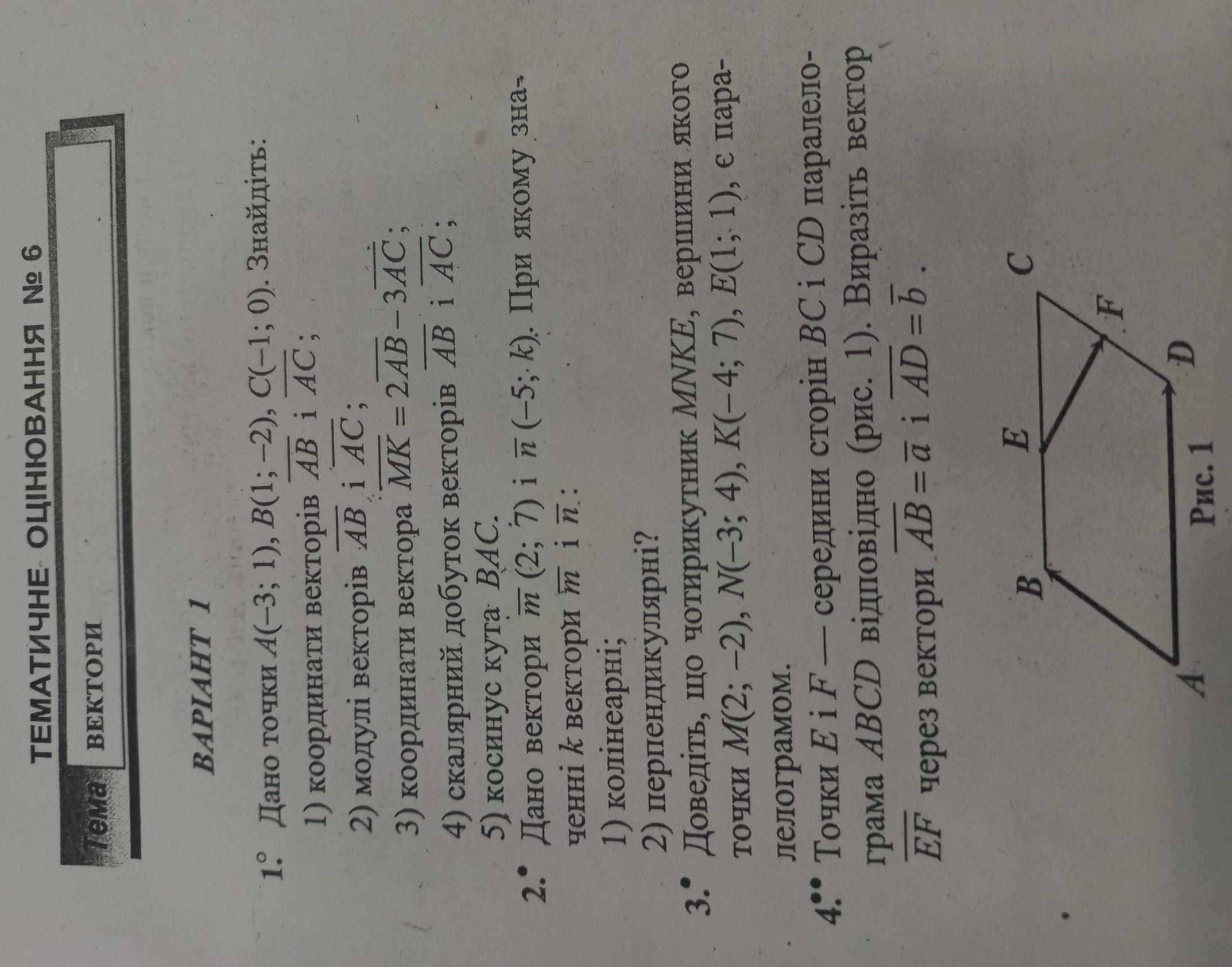 1.) Вектори колінеарні, якщо їхні відповідні координати пропорційні