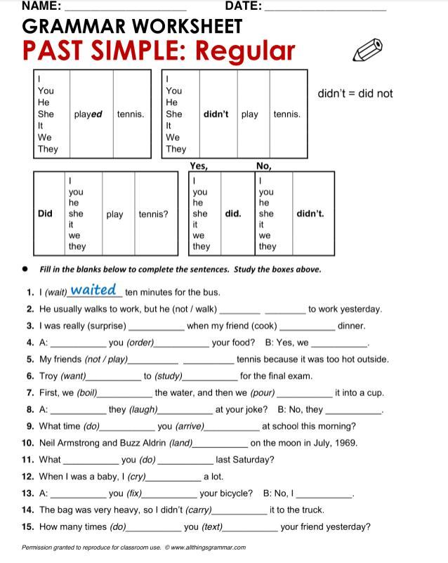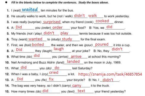 Fill in the blanks below to complete the sentences. Study the boxes above.