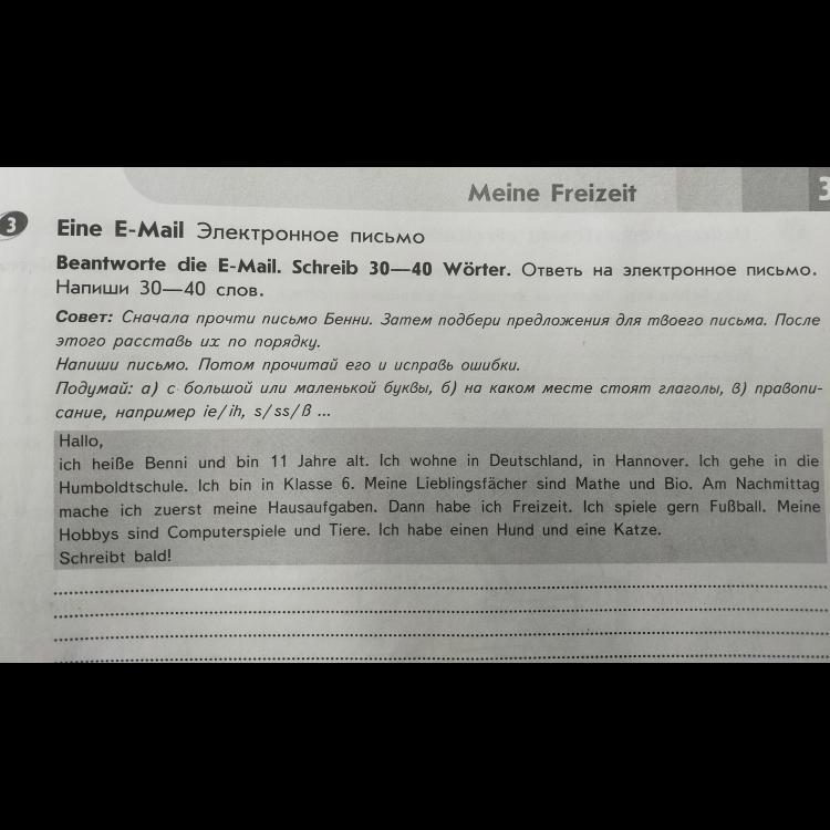 Am Nachmittag mache ich erst mal meine Hausaufgabe, und dann gehe ich in die Turnhalle Gymnastik machen. Dann habe ich Freizeit. Ich spiele Basketball. Meine Hobbys sind Malen und Computerspiele