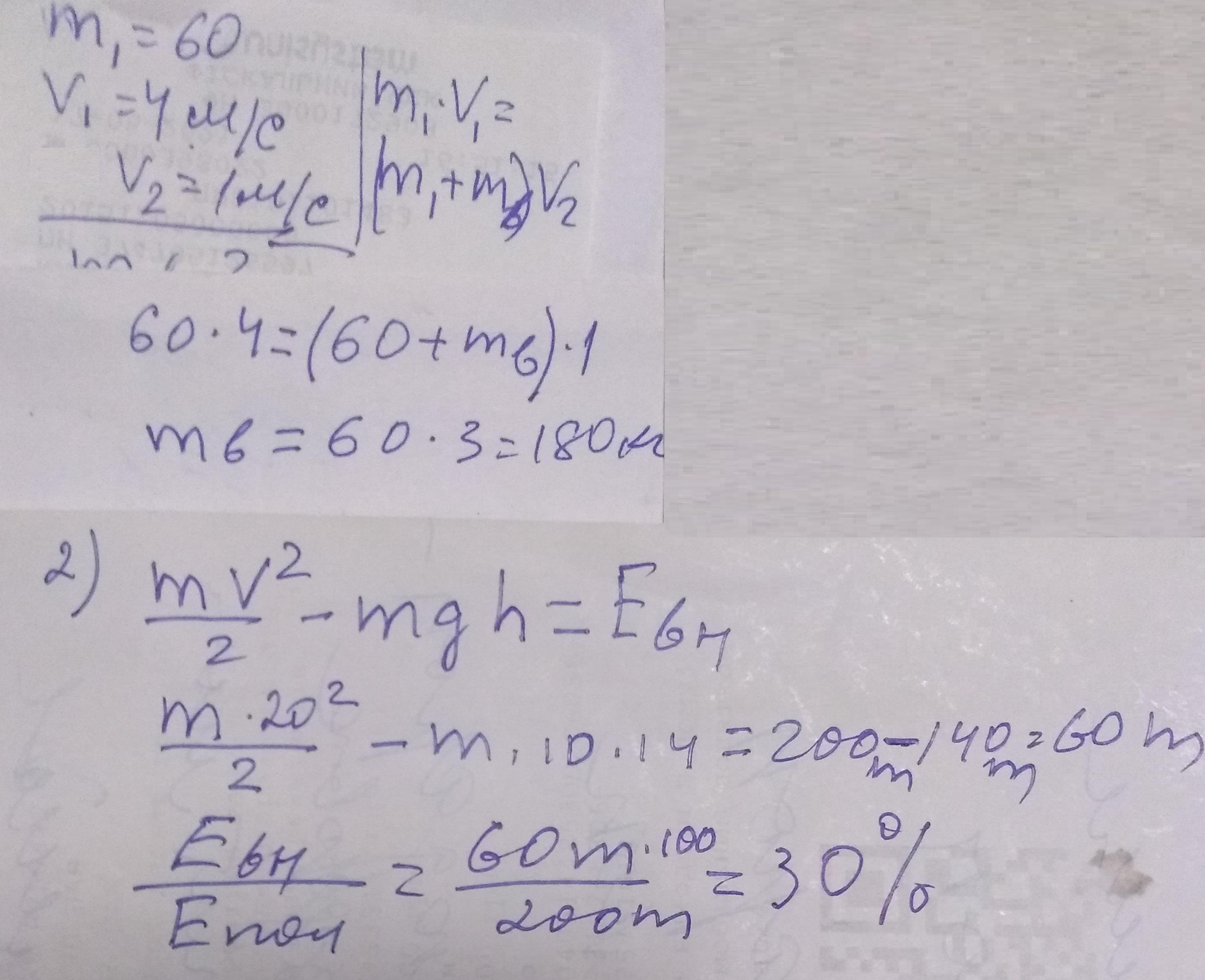 2) Тіло, яке підкинули вертикально вгору зі швидкістю 20 м/с , піднялося на висоту 14 м. Визначте скільки відсотків механічної енергії перейшло у внутрішню енергію.