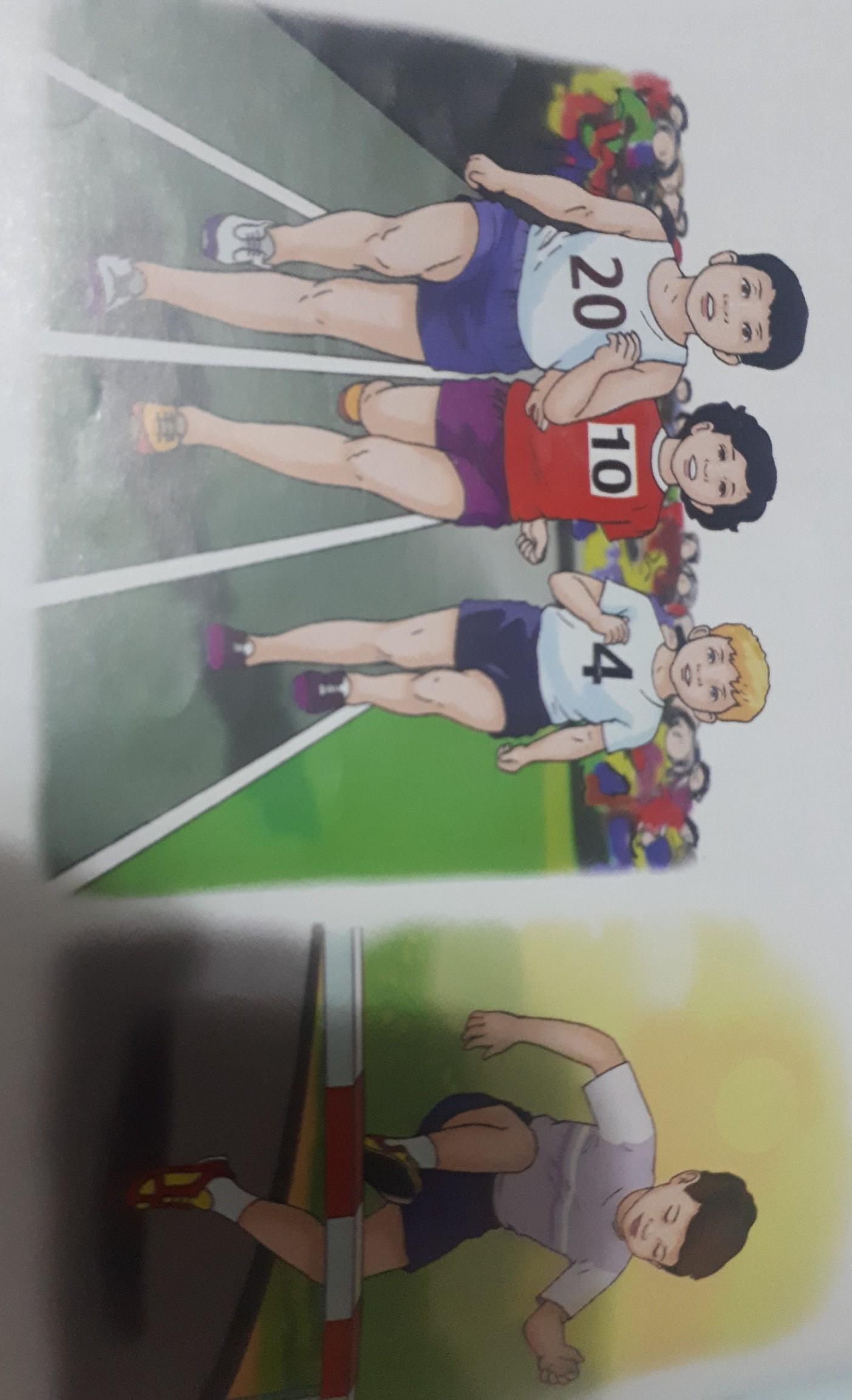 - Бұл жерде Айдос Амина және Ерлан үшеуі жарысқа келіп жүгіреді.Үшеуі бірдей келеді.Ал екінші суретте Жандос таяқтардан секіріп жүрді.
