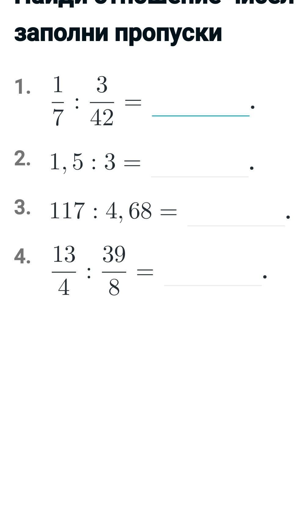 1. 6 2. 0,5 или пять десятых 3. 25 4. два третьих