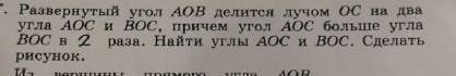 развёрнутый угол AOB делится лучoм OC на два угла AOC и BOC, причём угол AOC больше угла BOC в 2 раза. Найди углы АОС и BOC. Сделать рисунок