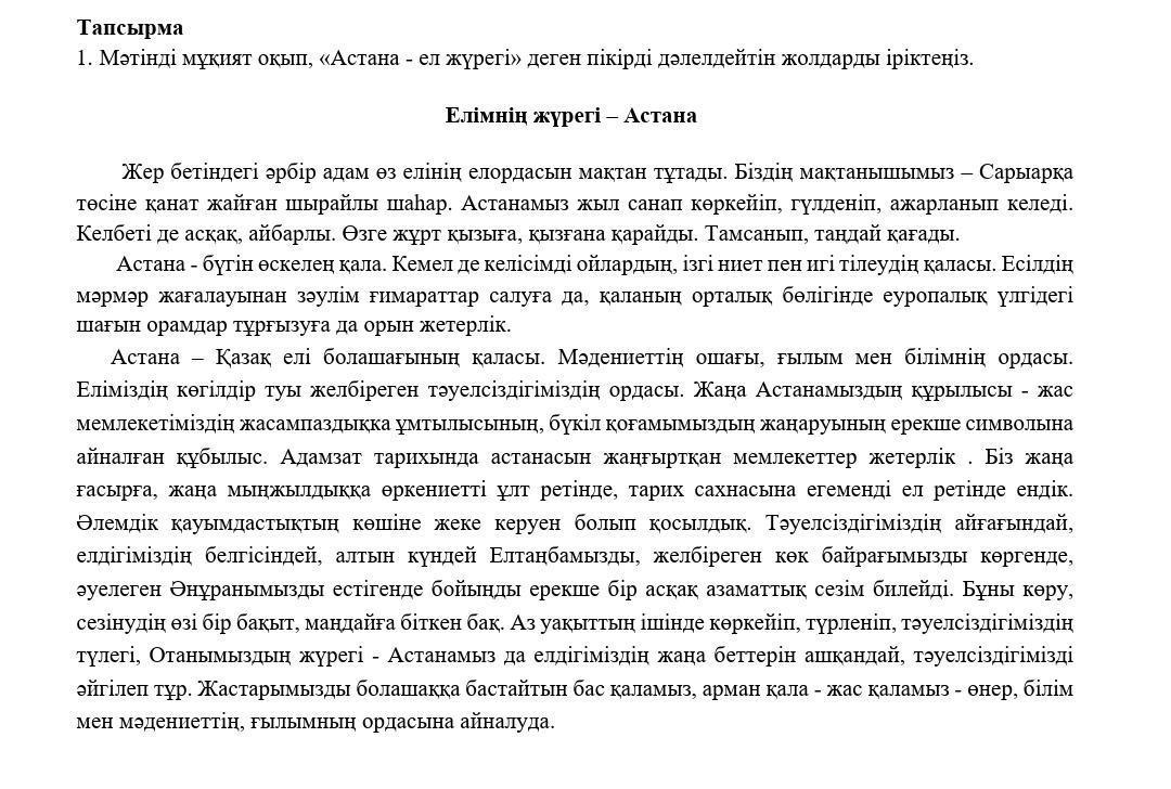 Мәтіннің тақырыбын анықтап,«Астана-ел жүрегі» деген жолдарды табу керек памагити пж