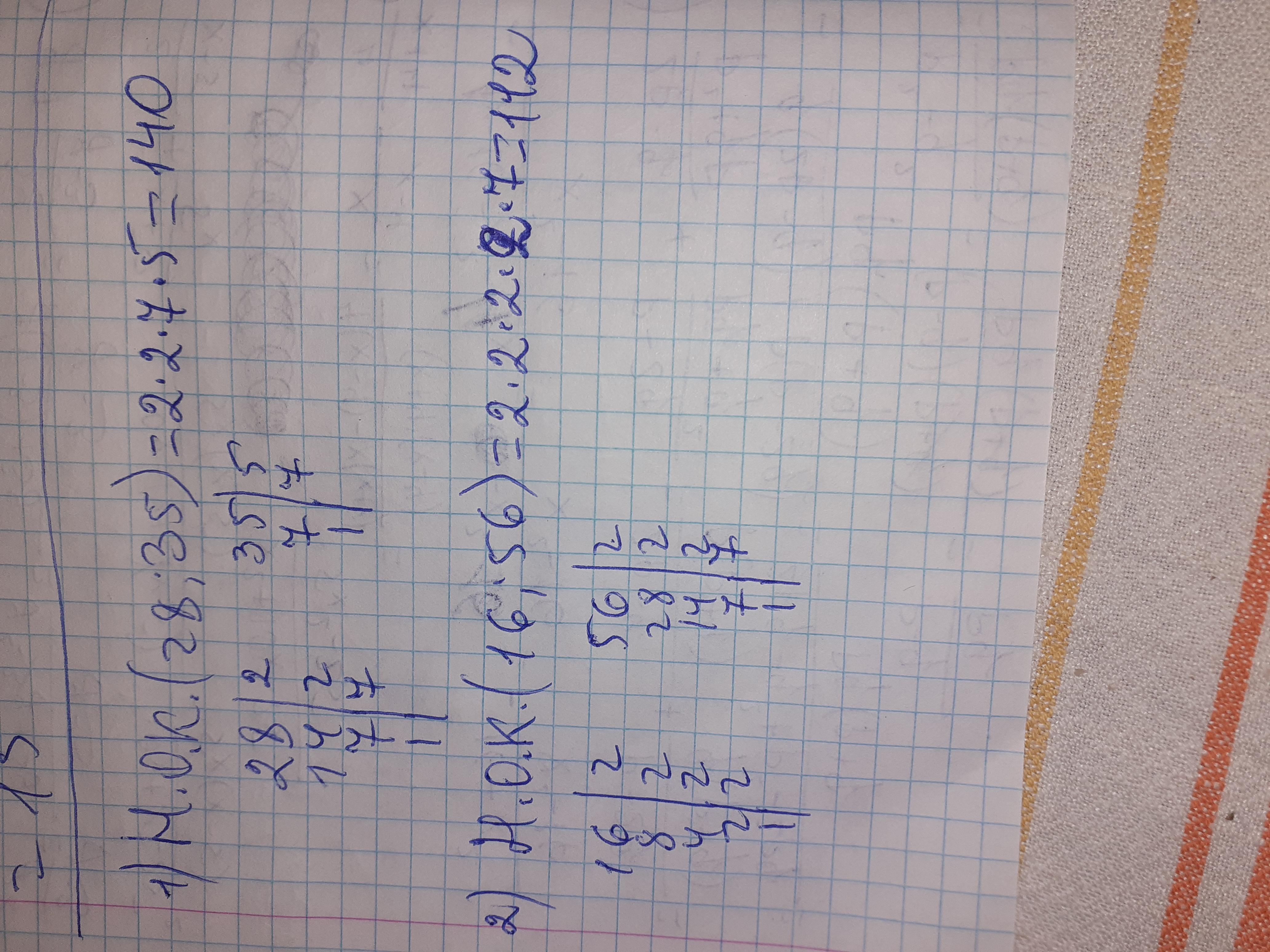 Найдите наименьшее общее кратное чисел методом разложения на простые множители 1)28 и 35 2)16 и 56 Прошууу помогите, дам 10-15 баллов
