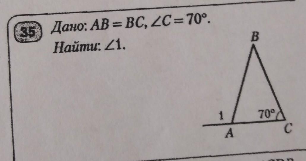 угол А равен углу С=70 градусам