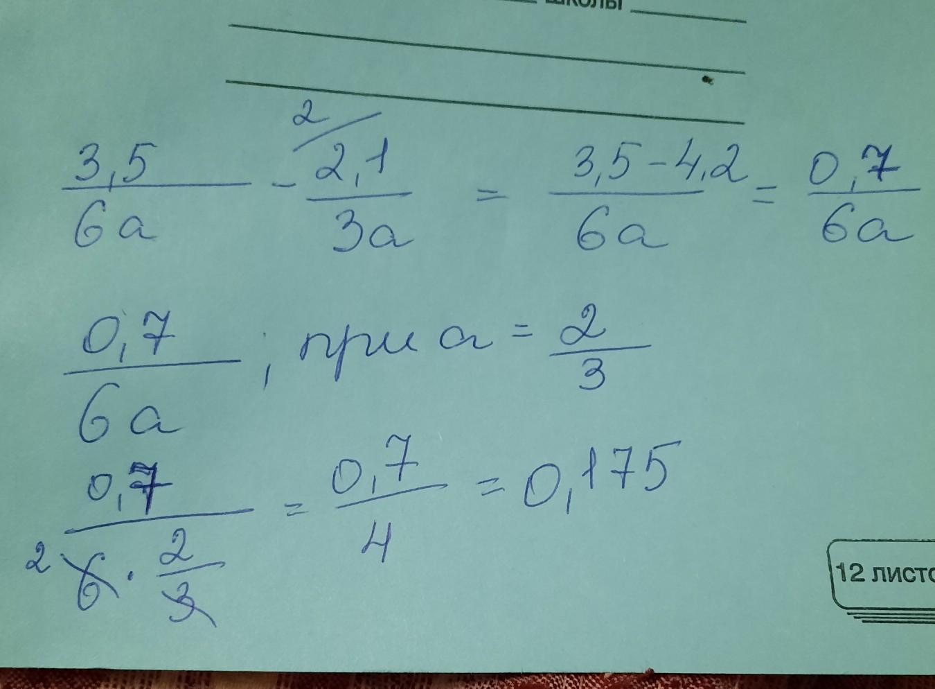 Упростите выражение и найдите его значение при а=2/3 3.5/6а-2.1/3.а