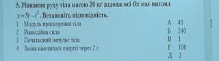 рівняння руху тіла масою 20 кг вздовж осі ох має вигляд x=5r-r^2
