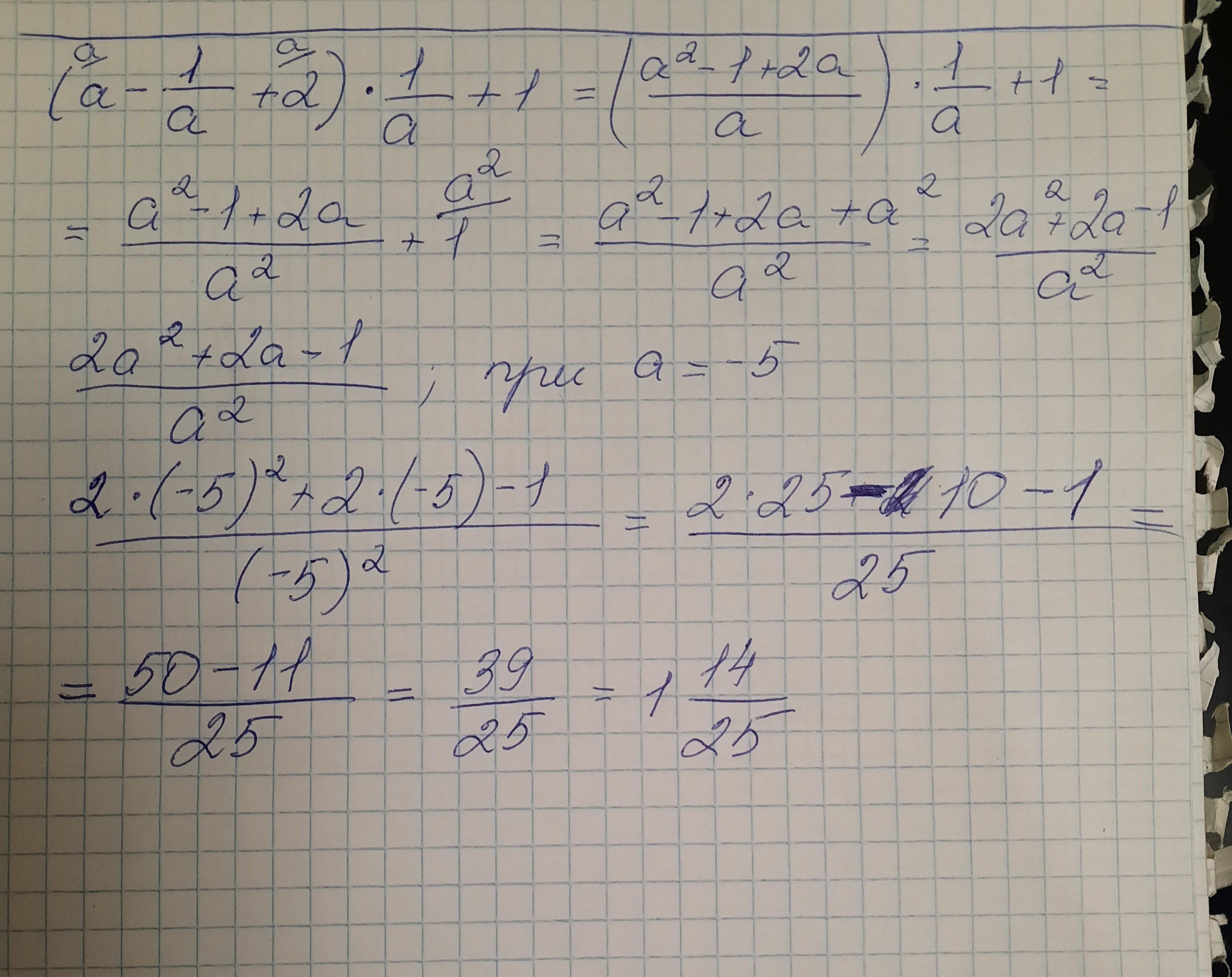 Вы написали дробь 1/а+1, которая после скобки, и там должно в одну дробь быть, а не просто дробь 1/а. Ещё вы вместо а+1/а(которая в скобках) написали а-1/а