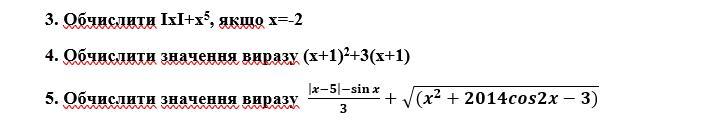 print((abs(x-5)-sin(x))/3+(x**2+2014*cos(2*x)-3)**0.5)
