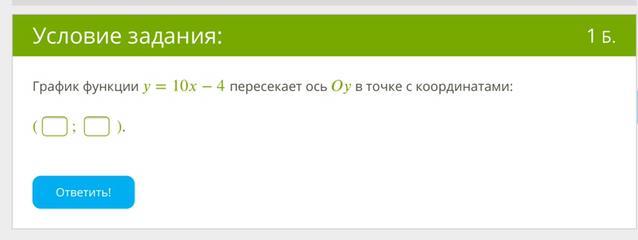 с осью ОУ. когда х=0 ⇒ у=10*0-4=0-4=-4 ⇒ (0; -4).