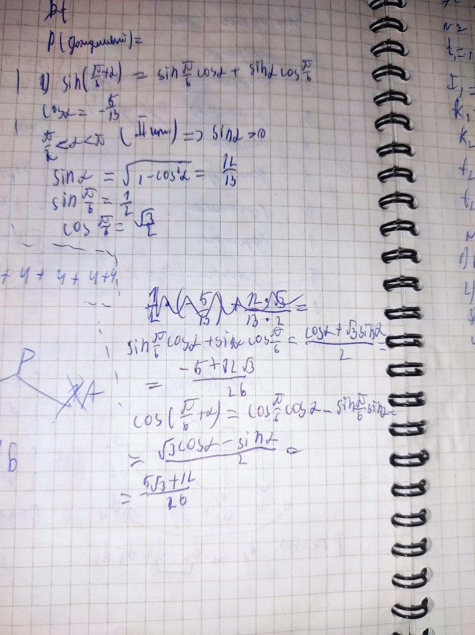в первом в cos(pi/6+a) там минус перед дробью и 26 в знаменателе