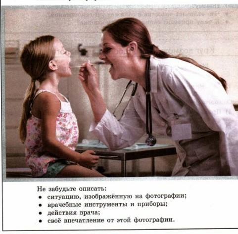 Ответ:Врач осматривает ребенка, осматривает горло, чтобы диагностировать болезнь, какой бы тяжелой она ни была. Как не странно,ребёнка не пугает ни белый халат,ни лабараскоп.Это хороший пример .