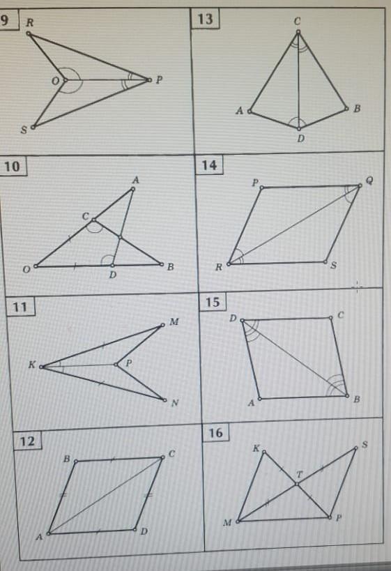 9) OPR и OPS (общая сторона и 2 равных угла) 13) CAD И CBD (аналогично 9)