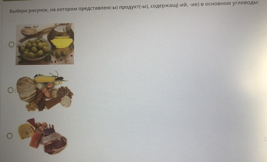 Выбери рисунок, на котором представлен(-ы) продукт(-ы), содержащ(-ий, -ие) в основном углеводы: