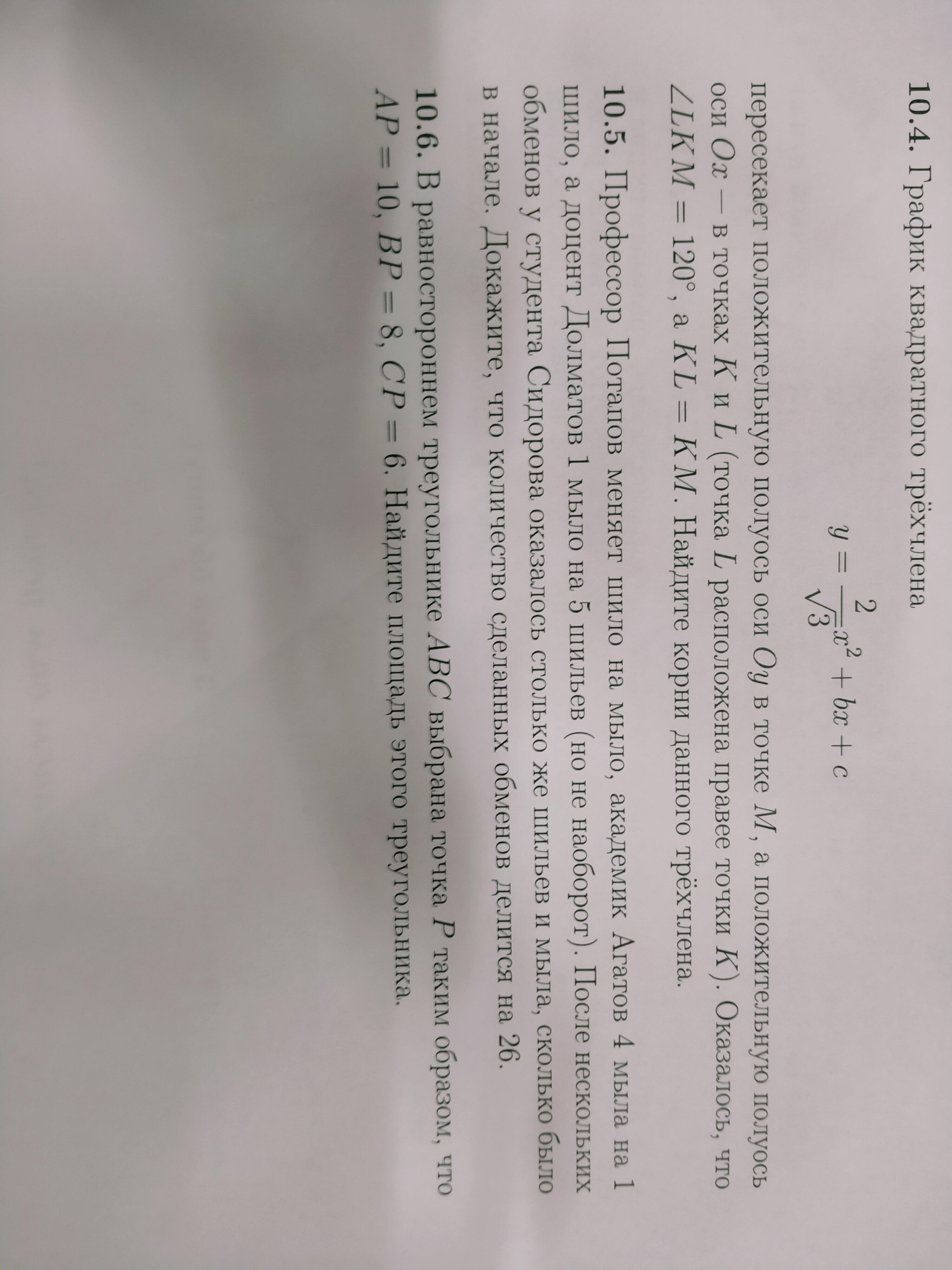 5. Профессор Потапов меняет шило на мыло, академик Агатов 4 мыла на 1 шило, а доцент Долматов 1 мыло на 5 шила (но не наоборот). После нескольких обменов у студента Сидорова оказалось столько же шила и мыла, сколько было вначале. Докажите, что количество сделанных обменов делится на 26.
