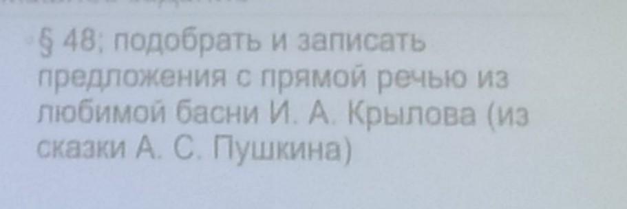 подобрать и записать предложение с прямой речью из любимой басни Крылова из сказки Александра Сергеевича Пушкина 5-7 предложений.