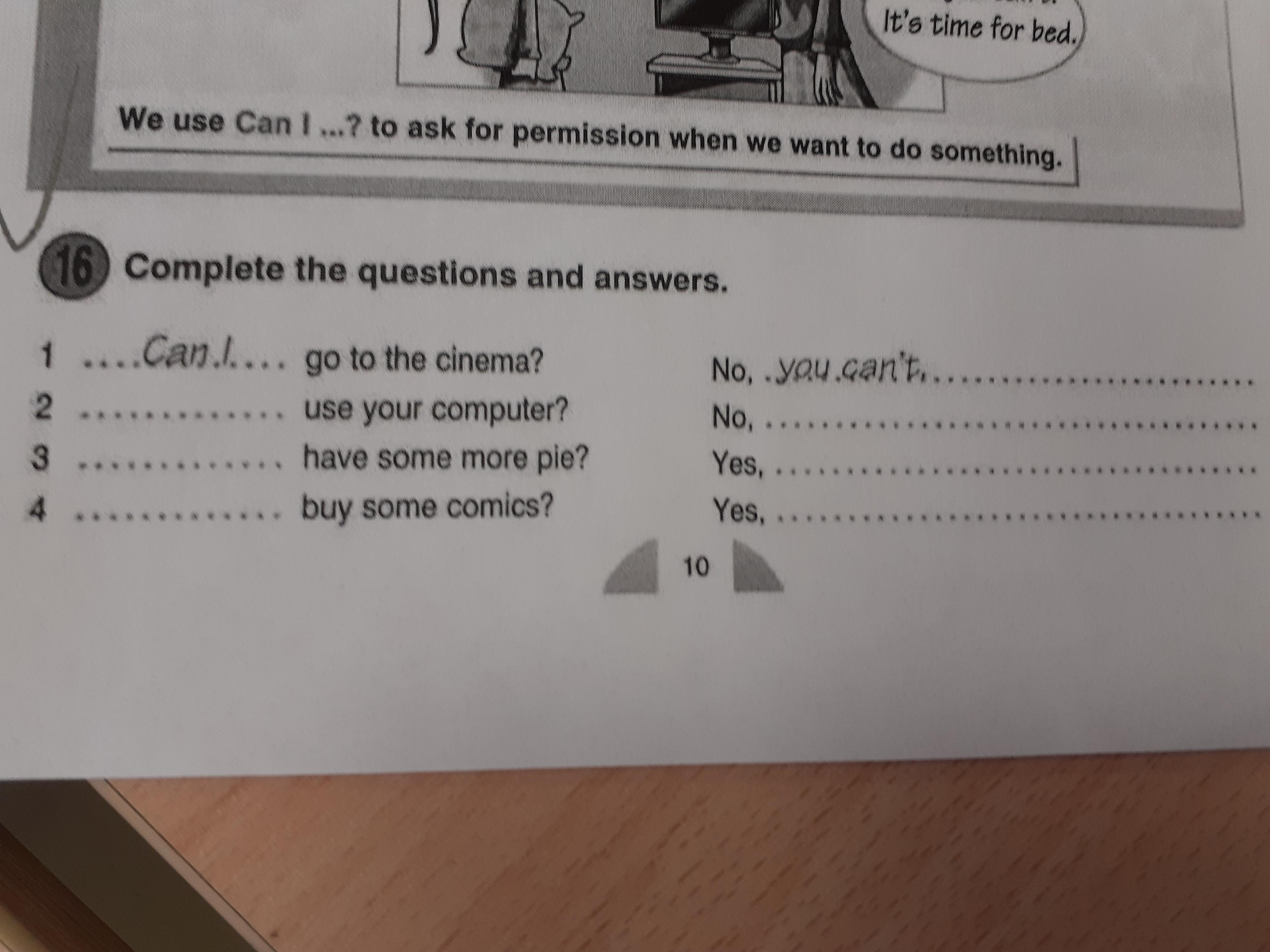 с первого до 4 так и пишешь can I а там где ответы первые два пишешь you can't а последние два просто you can