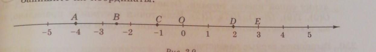 22. На координатной прямой отмечены точки A, B, C, D и E (рис. 2,9). Запишите их координаты.
