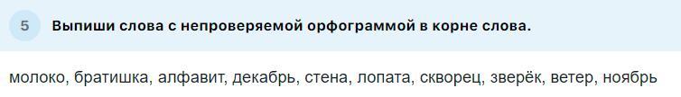 Молоко, алфавит, декабрь, лопата, ветер, ноябрь.