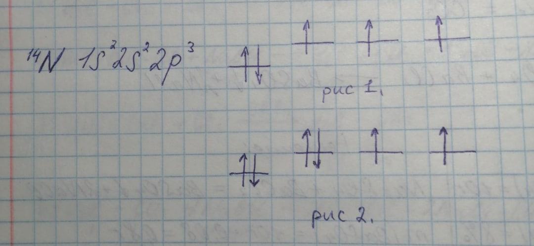 На рис 1. изображены S и P орбитали нейтрального атома азота, по два электрона на S-орбитали и по одному на P-орбиталях.