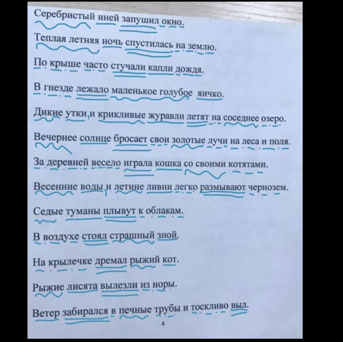 определение, которые отвечают на вопрос "какой? какая? какие? какое? и т. д. - волнистой линией. сказуемые, которые отвечают на вопрос что делать? что сделать? что сделает? и т. д. двумя линиями. подлежащие, которые отвечают на вопрос"кто? что?" - одной линией. дополнение, которые отвечают на вопросы "кого? кому? чему? чего? кем? чем? о ком? о чем" и т. д. вот такой линией "- - - - -" обстоятельство, которое отвечает на вопросы "где? куда? откуда? почему?" вот такой линией "-•-•-•-"