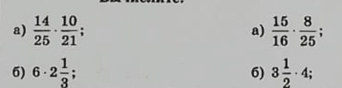 б) 6 × 2 1/3 = 6 × 1/4 = 3 × 1/2 = 3/2