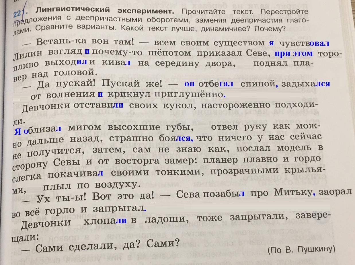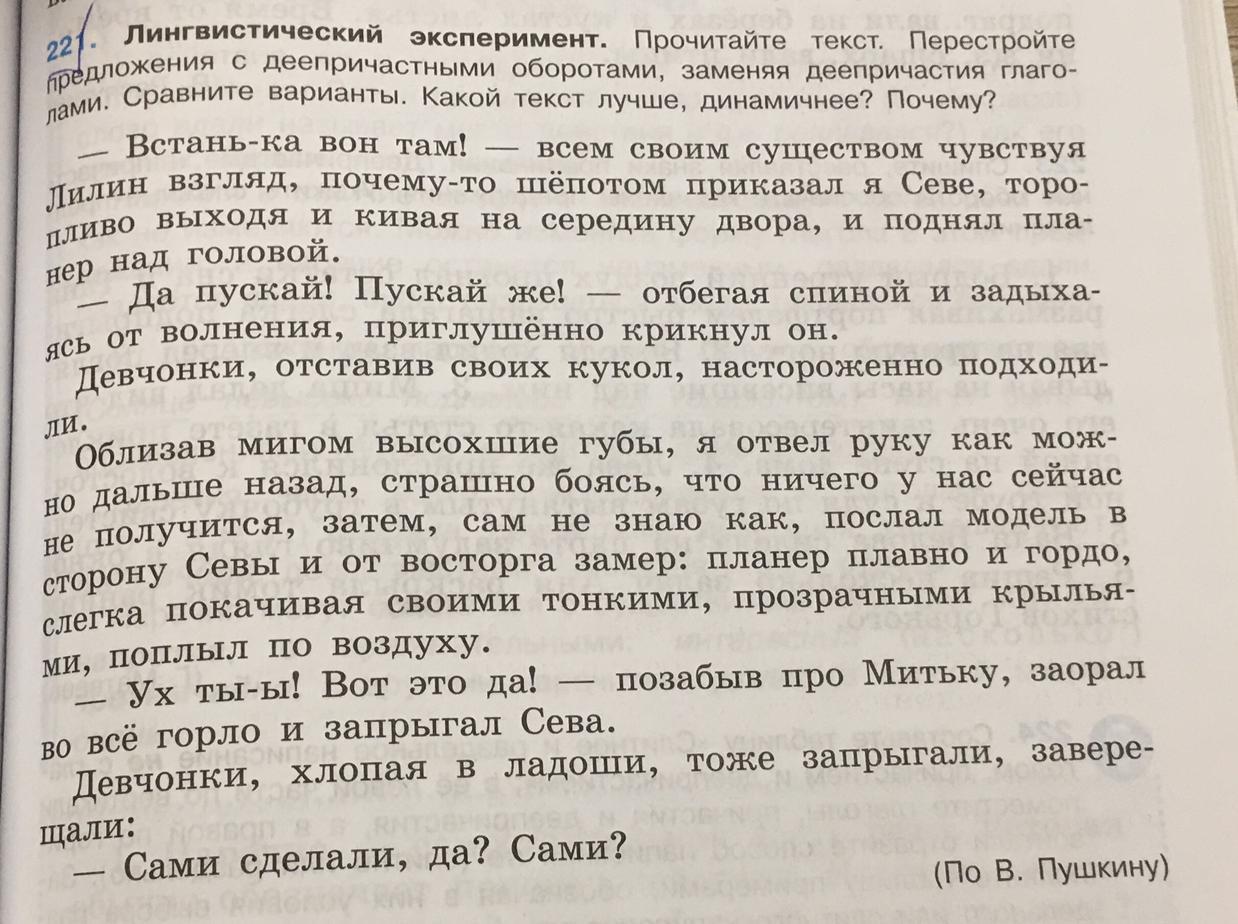 Динамичнее текст с деепричастными оборотами, так как он передаёт несколько действий одновременно, тогда как переделанный вариант передаёт последовательную цепочку действий, что замедляет процесс.