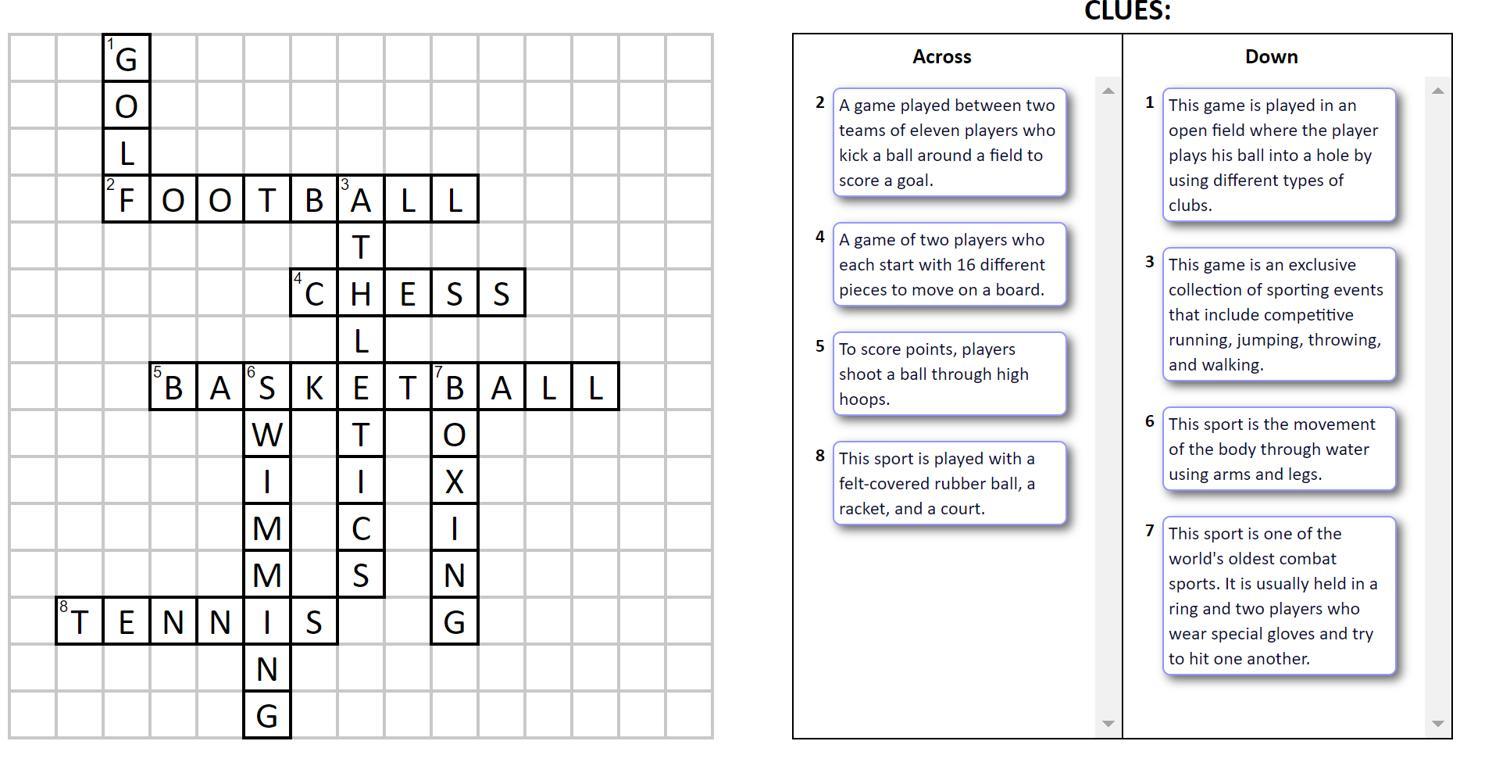 Ответ: я создал на сайте кроссворд, вопросы написаны сбоку.