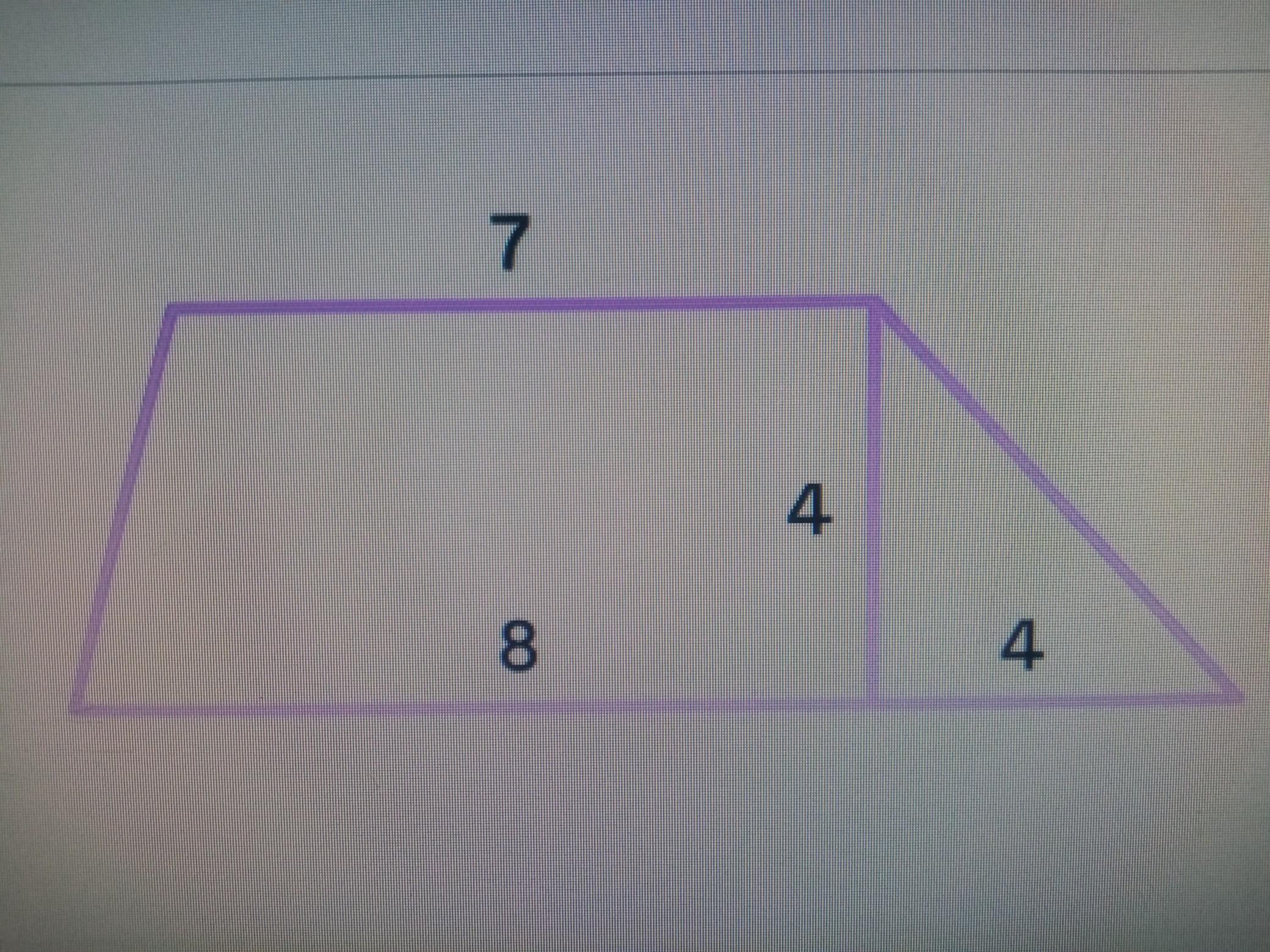 S(ABCD) = 1/2 × (a+b)×h = 1/2 × (BC + AD)×BH = 1/2 × (BC + (AH + HD))×BH = 1/2 × (7 + (4 + 8)) × 4 = 1/2 × (7 + 12) × 4 = 1/2 × 19 × 4 = 1/2 × 76 = 38