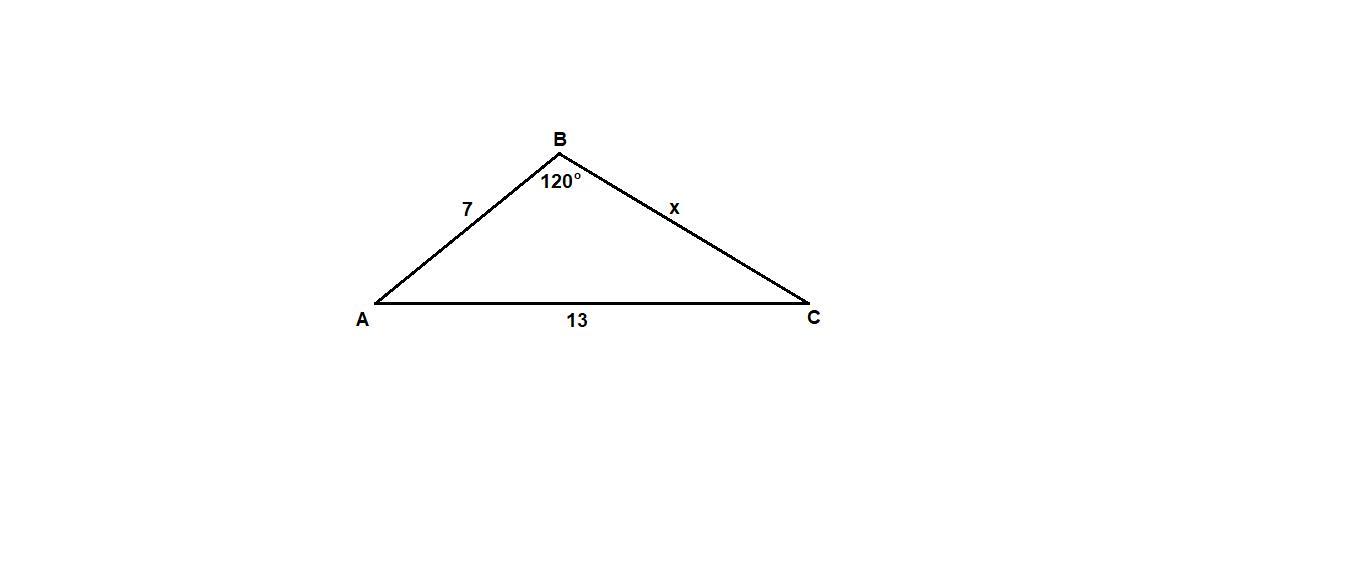 В треугольниук ABC <B=120 градусов ,AB=7 см ,AC=13 см.