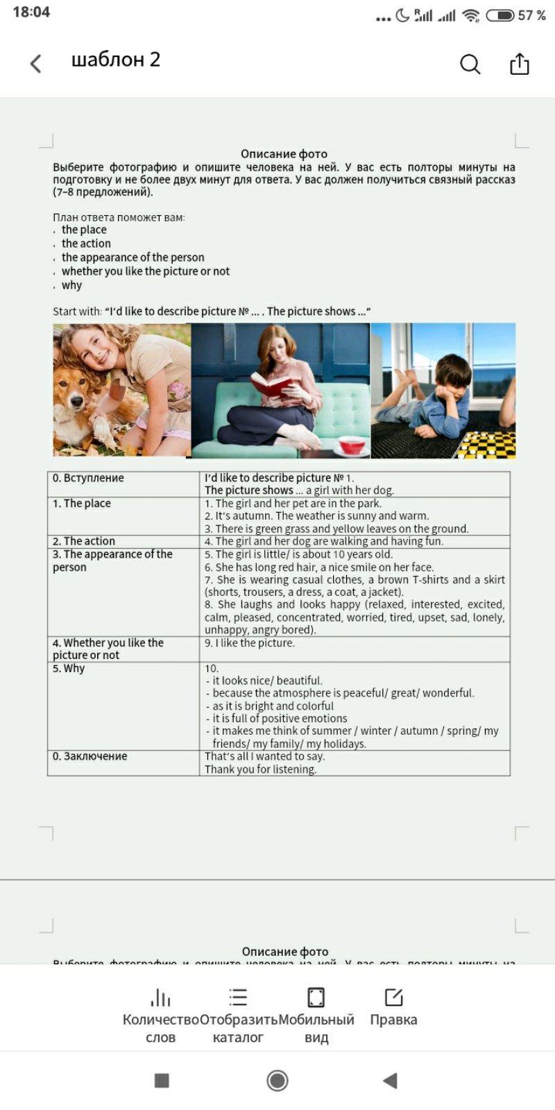 I’d like to describe picture № 2. The picture shows us a woman. The photo was taken inside. In this picture, the action is taking place in the room. Looking at this picture I get the impression that the woman is at home and she is reading a book. She is sitting on the sofa and holding the book in front of her. The woman is about 20 years old. She has got long brown hair.The woman is wearing casual clothes, a brown blouse and black trousers. She looks relaxed and interested. I like the picture because the atmosphere is peaceful. It makes me think of my favourite book.That's all I wanted to say.