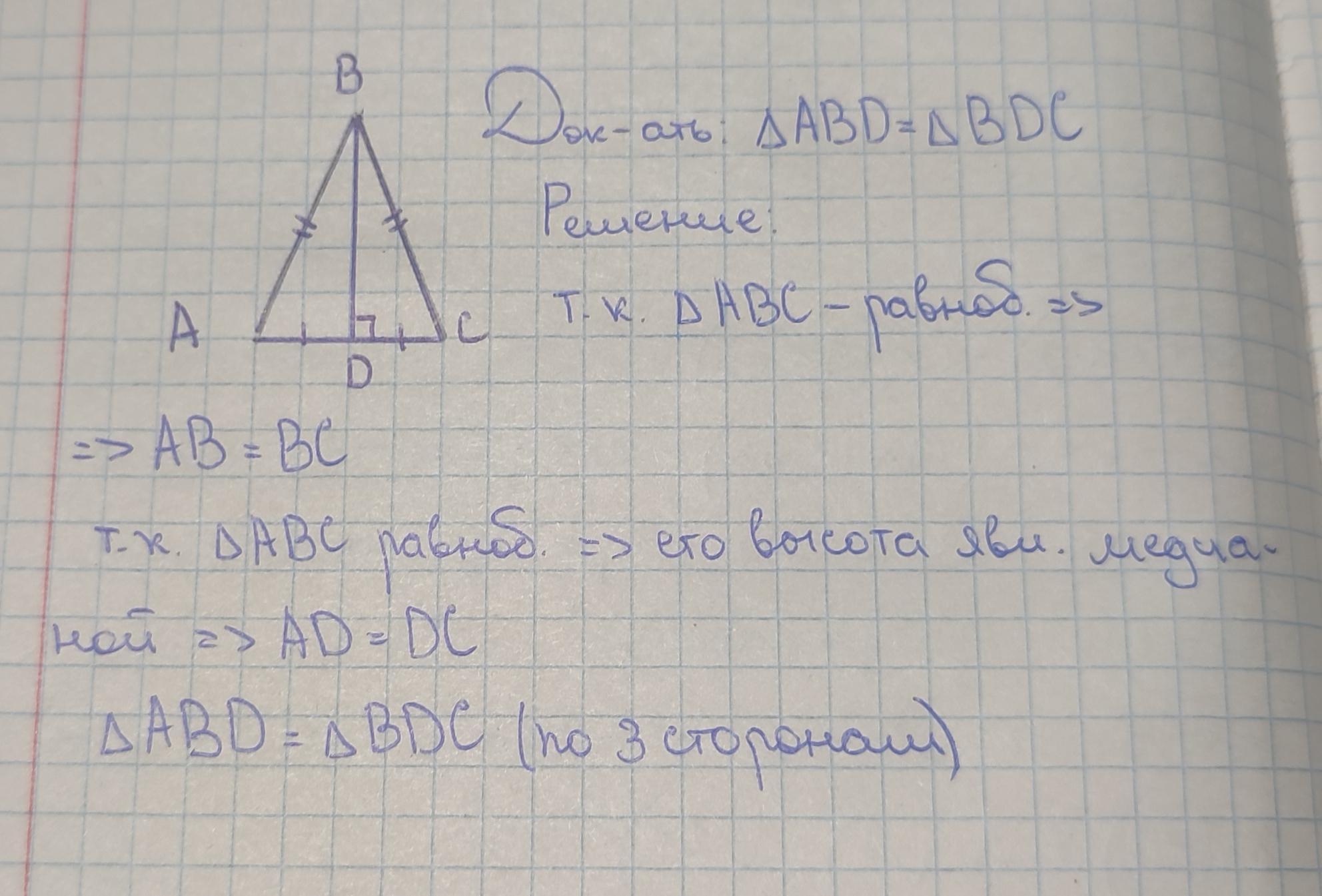 4) Постройте равнобедренный треугольник. Из вершины на основание треугольника опустите высоту. Докажите равенство получившихся треугольников.