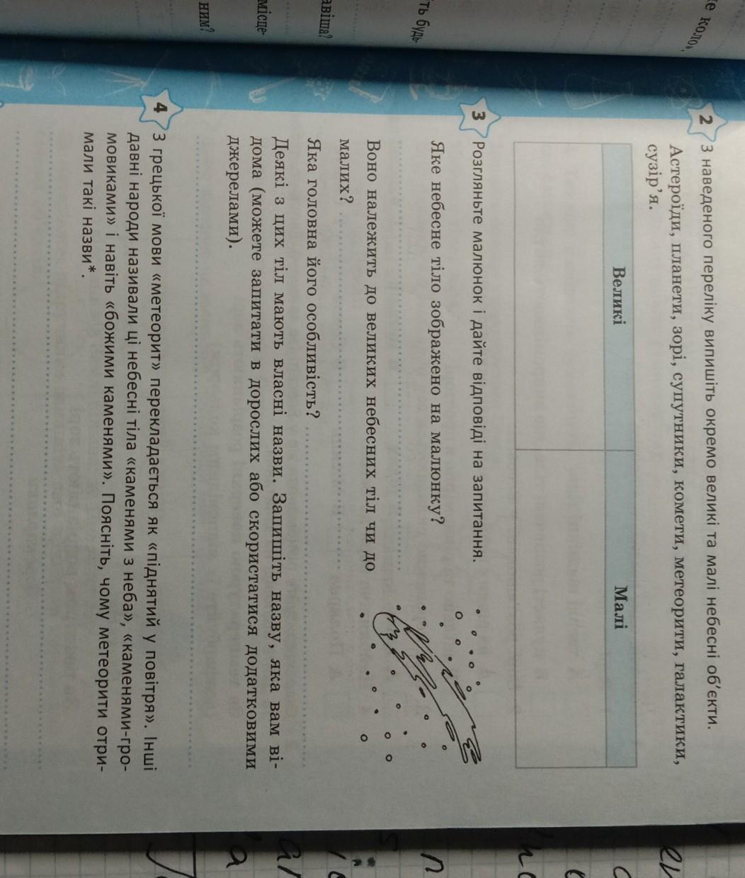 2 питання) Великі: планети, зорі, супутники, галактики, сузір'їя.