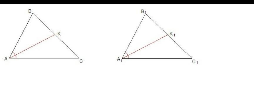 Пусть ΔАВС = ΔА₁В₁С₁, надо доказать, что биссектрисы равных углов равны, т.е. что АК = А₁К₁.