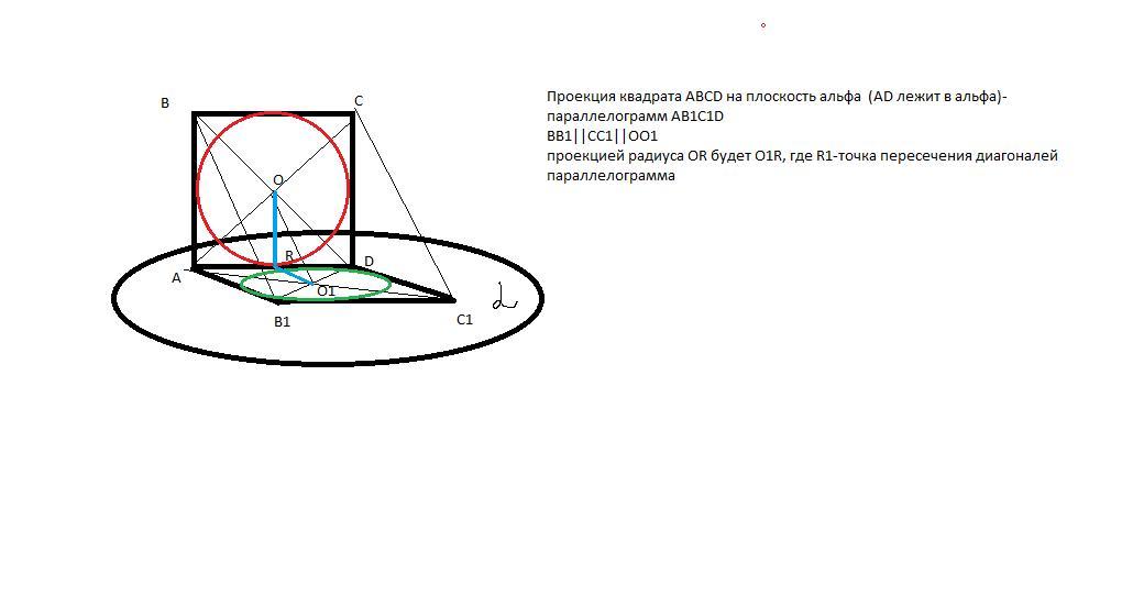 В параллельной проекции квадрата построить изображение радиуса вписанной окружности, проведенной к стороне квадрата.!!!?!?