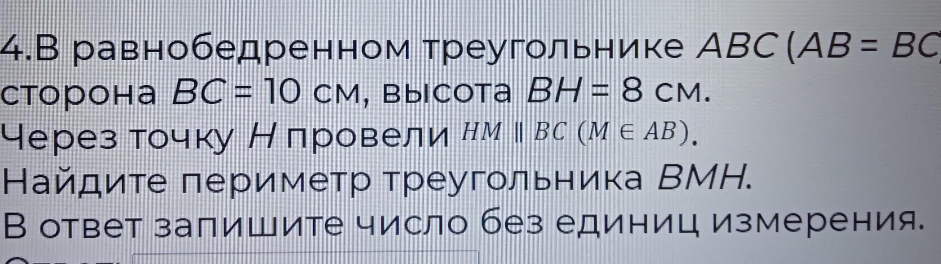 Р (ΔВМН) = МВ + ВН + МН = 5 +8 +5 = 18 (см)