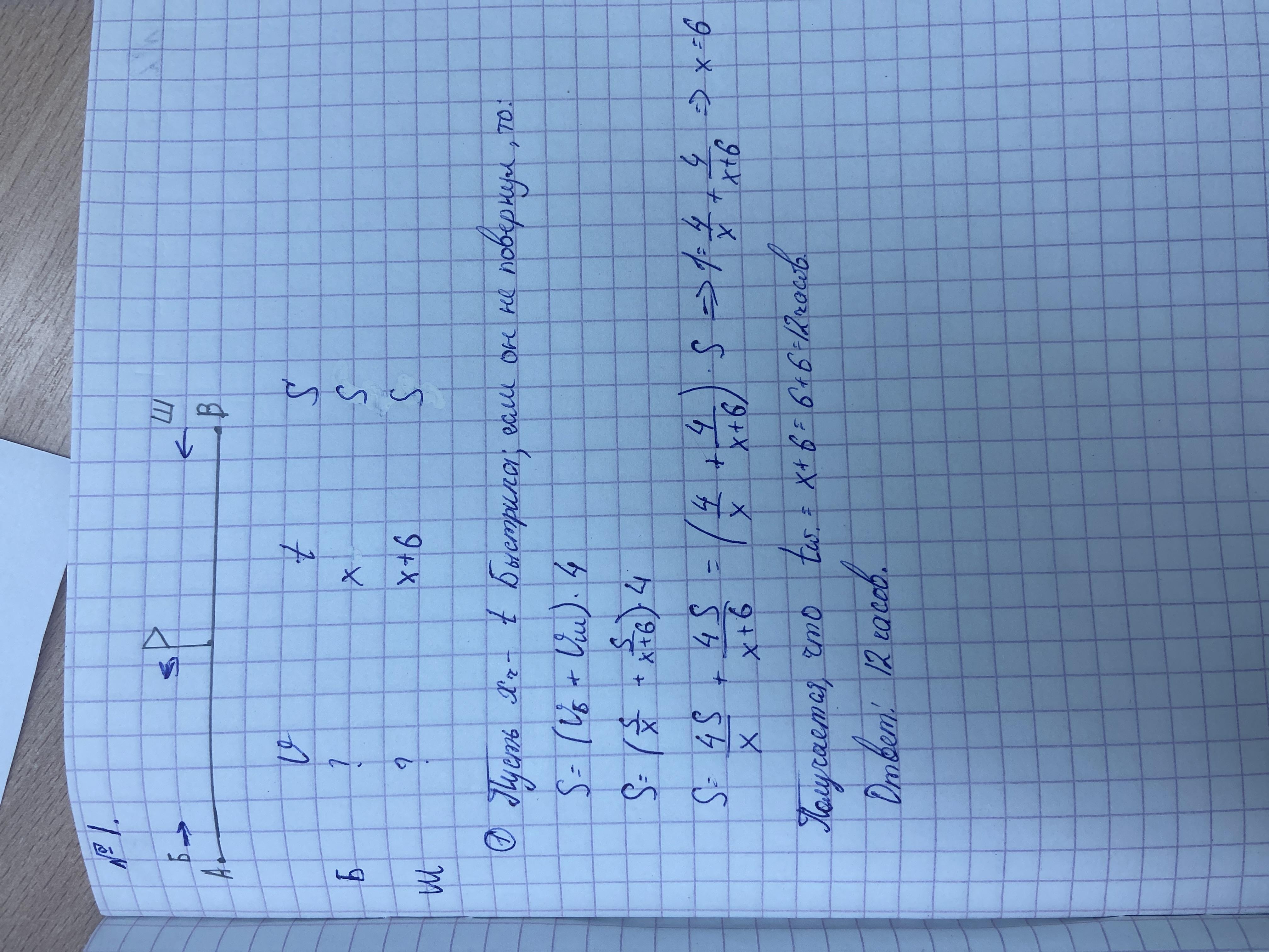 Скороходы Быстрик и Шустрик выбежали навстречу друг другу из пунктов А и Б соответственно. Пробежав половину пути, Быстрик повернул назад и прибежал в пункт А на 6 часов раньше Шустрика. Если бы Быстрик не повернул назад, то скороходы встретились бы через 4 часа после старта. Сколько часов нужно Шустрику, чтобы пробежать все расстояние от А до Б.
