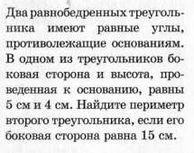 Надо добавить: подобны по второму признаку подобия "Если угол одного треугольника равен углу другого, а стороны, образующие тот угол в одном треугольнике, пропорциональны соответствующим сторонам другого, то такие треугольники подобны". В подобных треугольниках отношения всех линейных размеров: сторон, высот, медиан, биссектрис, периметров равны коэффициенту подобия.