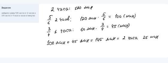 1)Найдите сумму ⅚ части от 2 часов и ¾ части от 1 часа в часах и минутах.