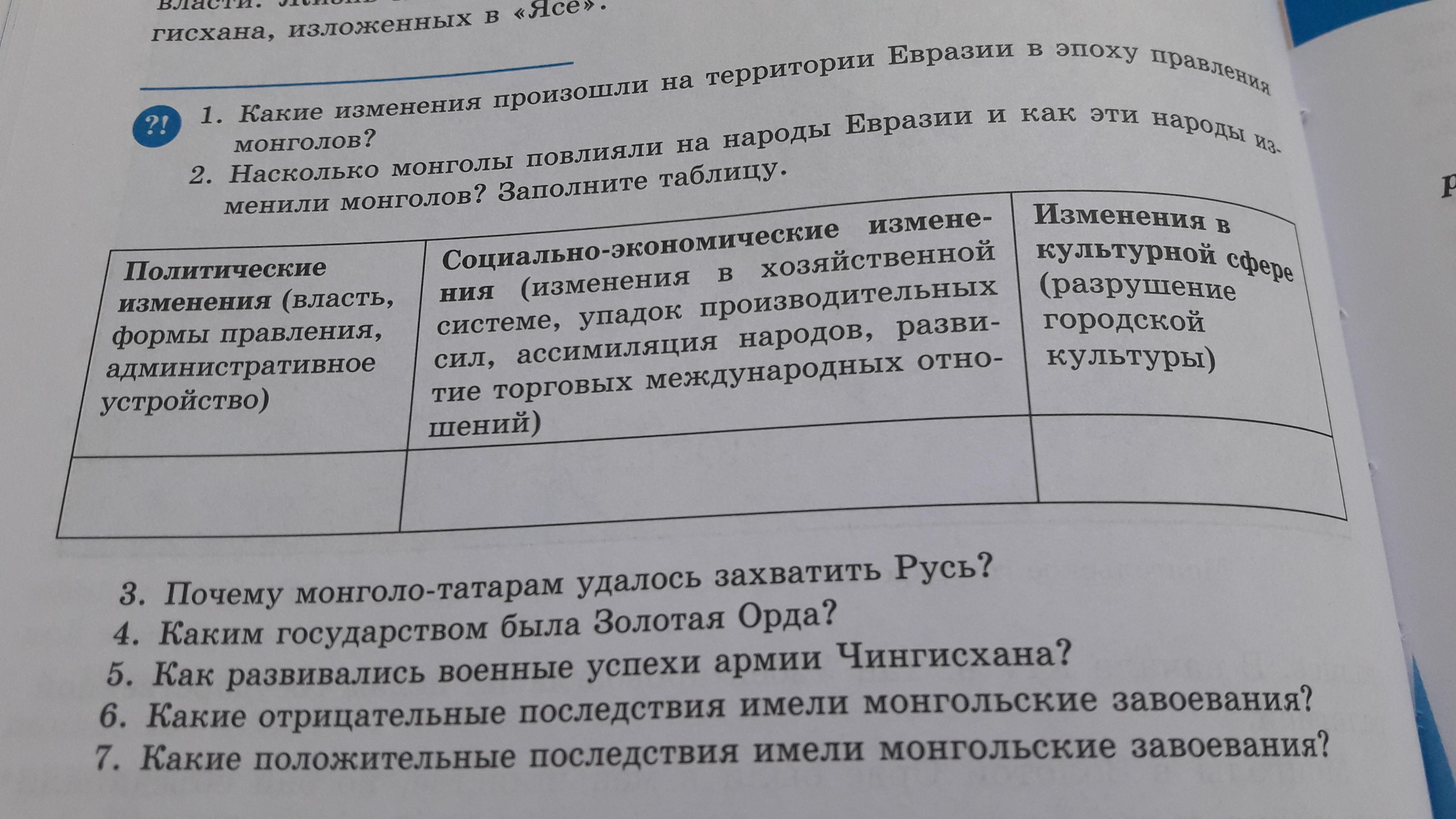 Изменения в культурной сфере: влияние монгольской культуры на Русь, разрушаются старые русские города, но появляются новые торговые города.
