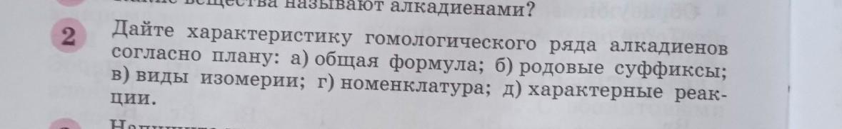 г) название соответствующего алкана без последней буквы + суффикс -диен (бутадиен, пентадиен, гексадиен и тд)