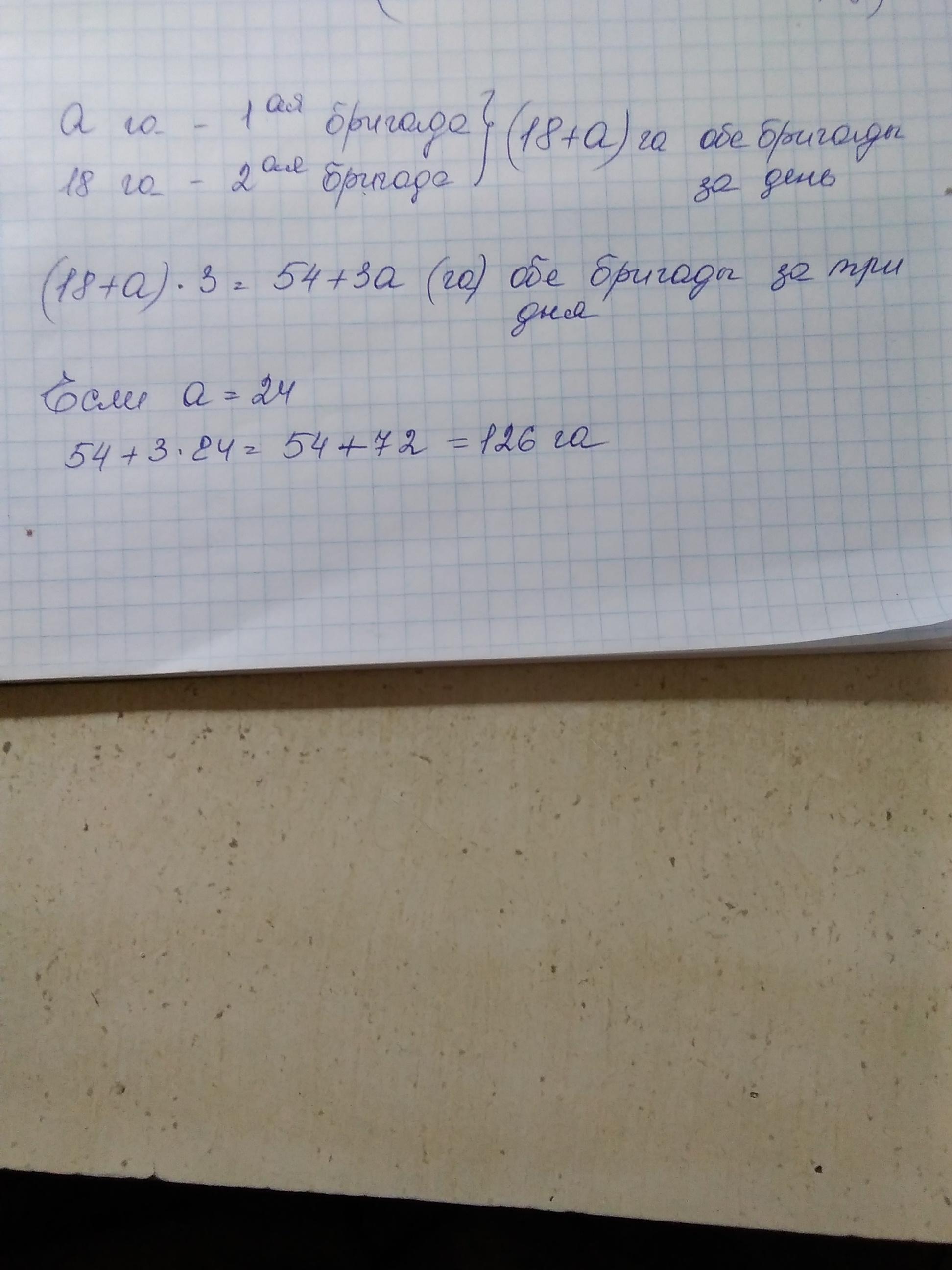 Одна бригада Трактористов задний вспахивает Ага земли другая Бригада 18 га земли обе бригады работали три дня сколько гектаров земли вспахал внеси Две бригады Трактористов если А = 24