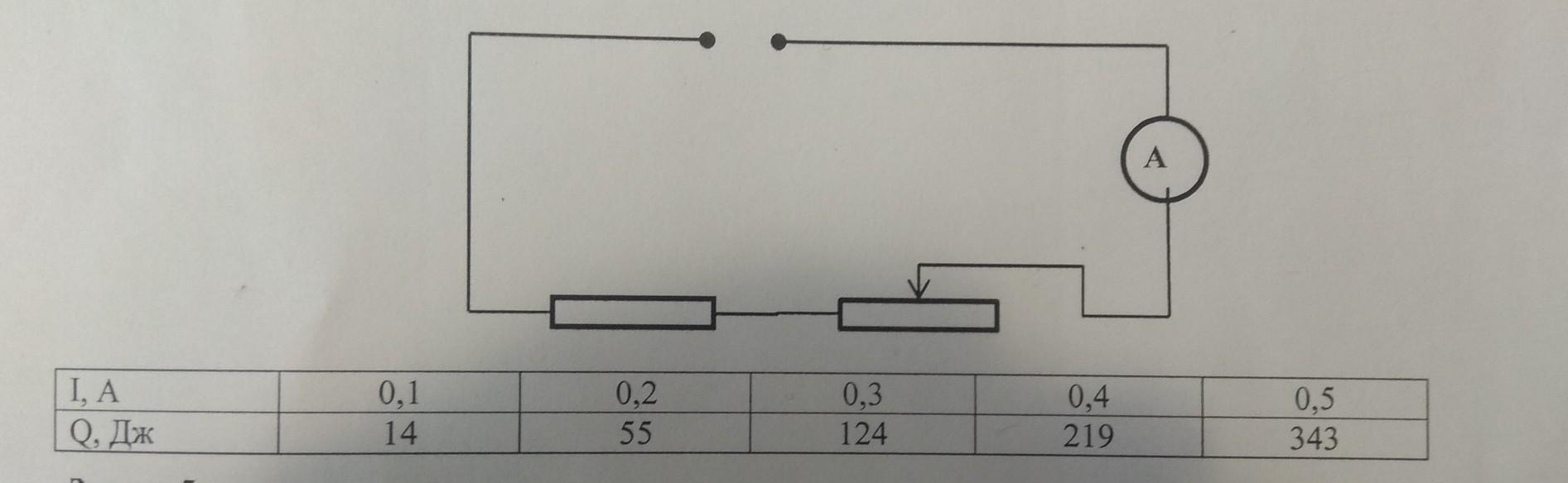 количество теплоты. Повторив данный опыт 5 раз, получили приведенную ниже таблицу с силой тока и