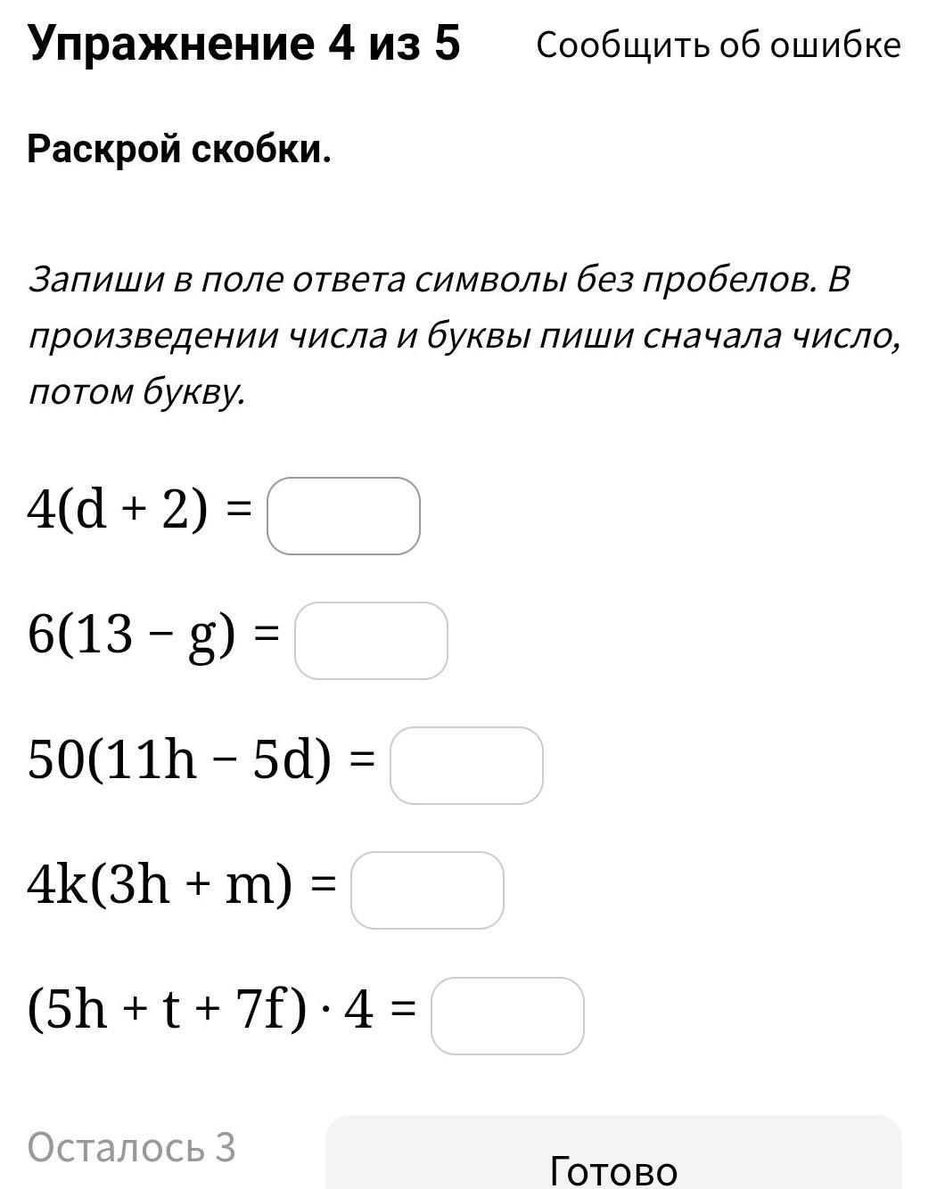 Пожалуйста прошу помогите Запиши в поле ответа символы без пробелов. В произведении числа и буквы пиши сначала число, потом букву.