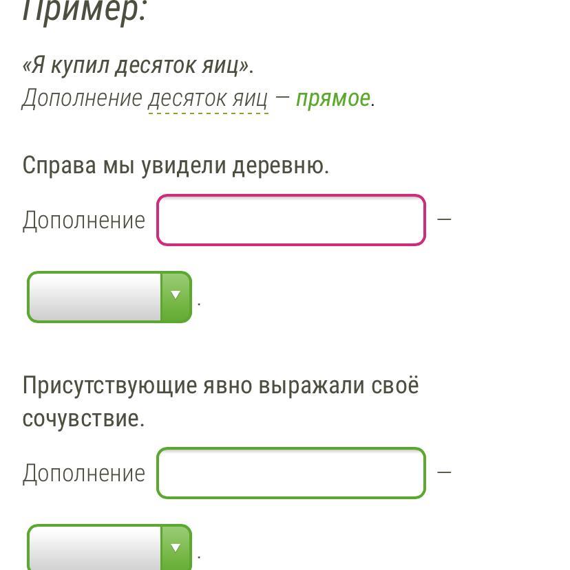 - дополнение:деревню . прямое 2 дополнение:совоё сочуствие. прямое