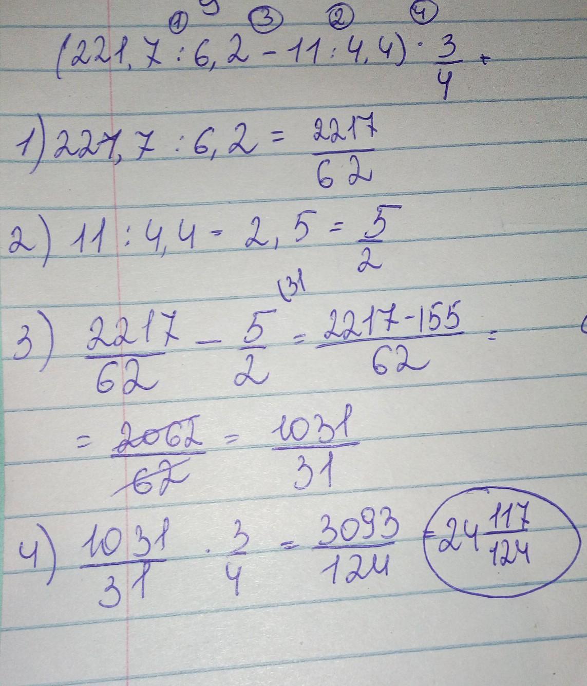 221, 7 : 6,2 – 11 : 4,4)*3/4