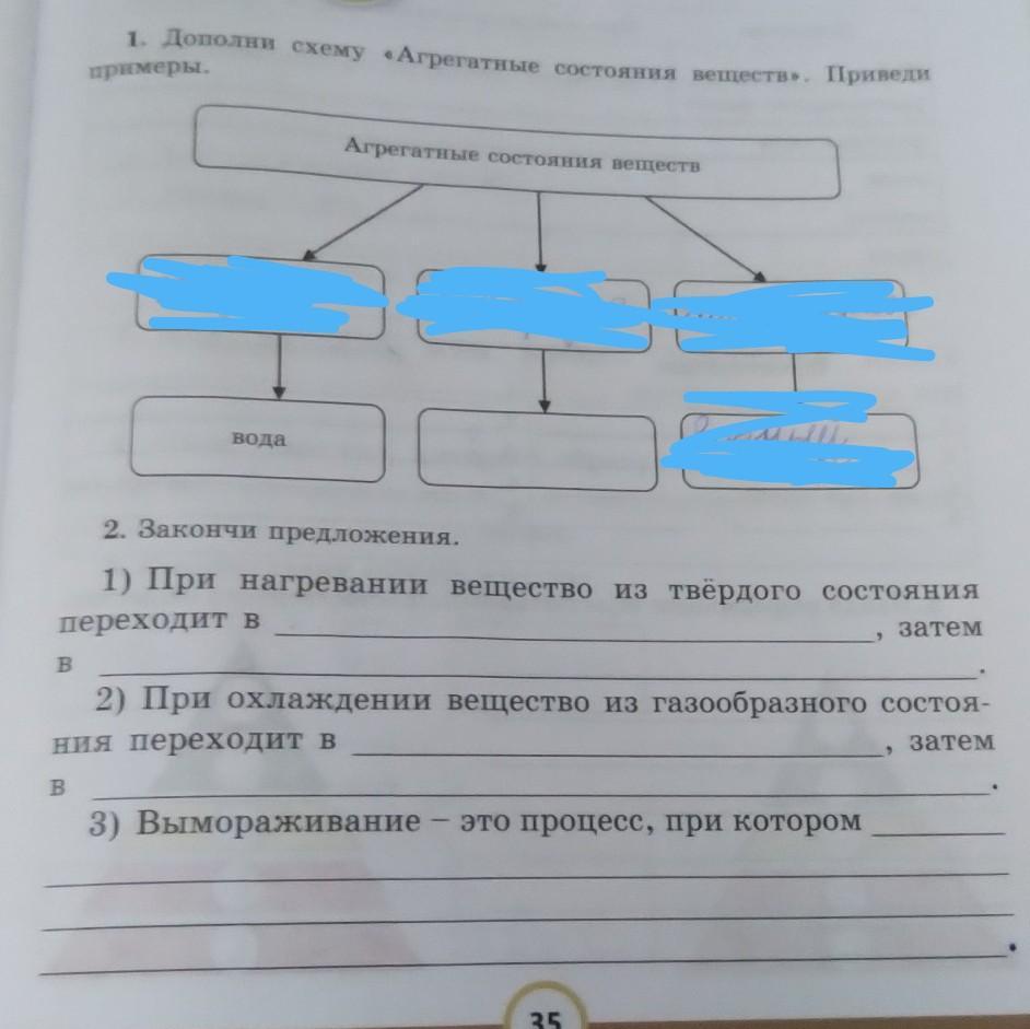 1) При нагревании вещество из твёрдого состояния переходит в __________________, затем в __________________,