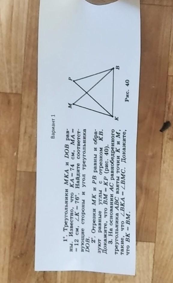 1)ΔMKA=ΔDOB ⇒ DB=MA=12см,OB=KA=74см, ,∠K=∠O=76°
